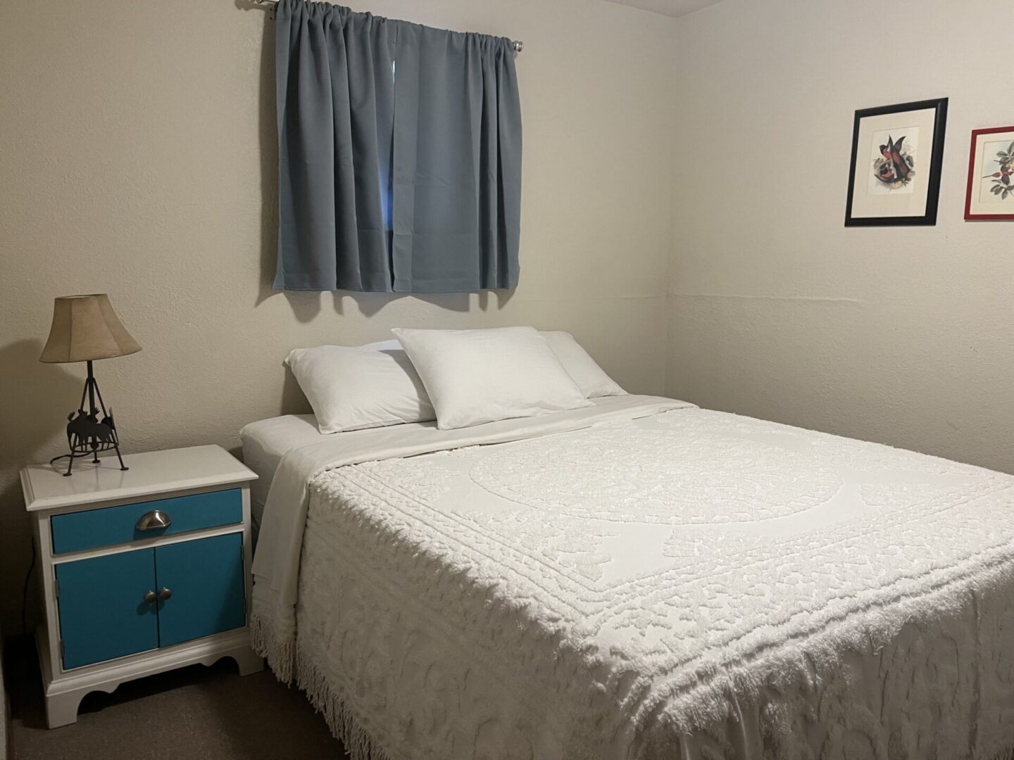 The only stand alone two bedroom cabin with all the perks. Privacy, covered patio, outdoor picnic area, and central A/C make this centrally located cabin the perfect choice for a party of 2 to 4. Includes 2 soft full-sized beds.
