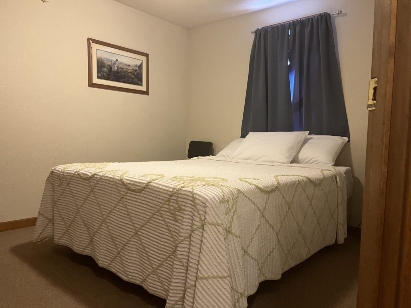 This small two-bedroom knotty pine cabin provides 2 comfy cozy full-sized beds. Bathroom with stand-up shower. Enjoy your charming, covered patio with a fantastic view from the point.